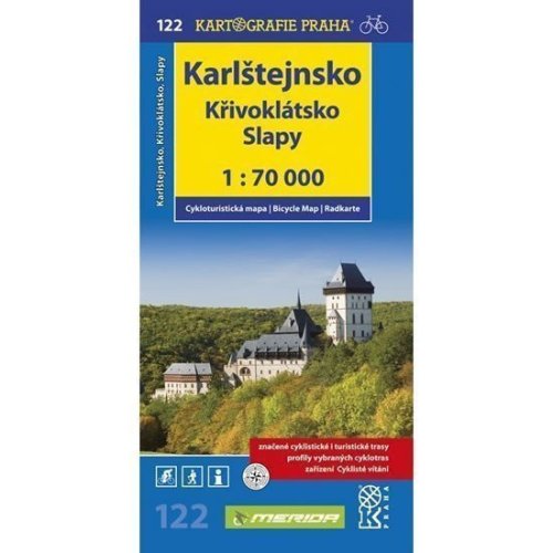 Jedinečná krajina hlubokých lesů CHKO Křivoklátsko, Brdské hřebeny, historické hrady i rekreační oblast Slapské přehrady jsou obsaženy na cykloturistické mapě č. 122. Pokud se vydáváte na kole (ale i pěšky) z Prahy jihozápadním směrem, nenajdete lepšího společníka než tuto mapu. přehledná cyklomapa 1 : 70 000 všechny značené cyklotrasy rozlišení povrchů cyklotras profily vybraných cyklovýletů kilometráž prodejny opravny a půjčovny kol nebezpečná místa síť WGS-1984 zařízení cyklisté vítáni