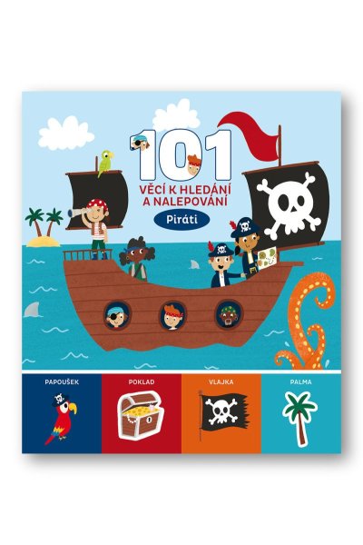 Nic nebaví děti tolik jako hledání obrázků a dolepování samolepek na stránky pracovního sešitu. V tomto sešitě si takové aktivity užije do sytosti - čeká jej totiž přes 101 obrázků. Některé bude nejprve hledat, další pak nalepí. Na každé dvojstraně objeví pirátskou loď, hledání pokladu či zažije bouři na moři. Při plnění úkolů a zodpovídání otázek se děti naučí, jak se co nazývá. Pomocí dolepování samolepek na správné místo si také procvičí jemnou motoriku.