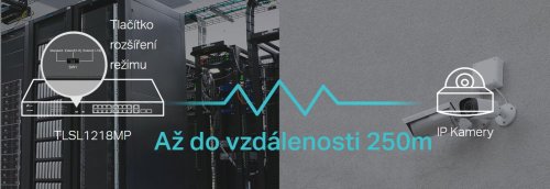 Přenos dat a napájení až do vzdálenosti 250 m v režimu prodloužení speciálně navrženého pro dohledový systém