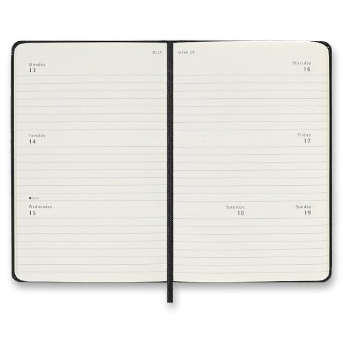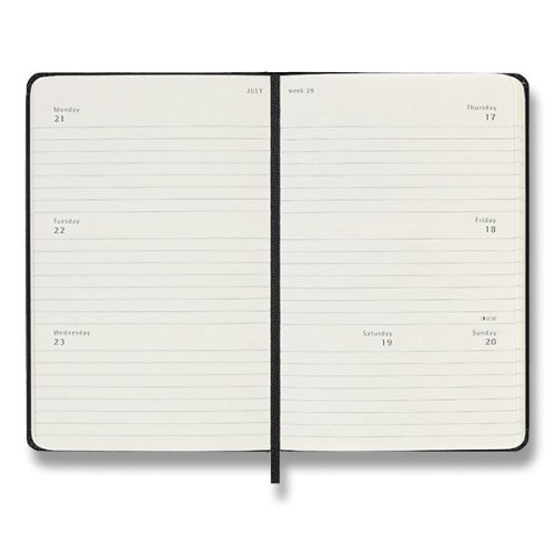 Gramáž papíru 70 g/m², neobsahuje kyseliny. Papír má slonovinovou barvu a je vyroben z FSC certifikovaného dřeva., Rozměr: 9 x 14 cm, 104 listů., Velikosti diářů:, * XS - 6,5 x 1,5 cm, * S - 9 x 14 cm (A6), * L - 13 x 21 cm (A5), * XL - 19 x 25 cm (B5), Včetně 3 archů tematických samolepek., Diář je v anglickém jazyce., , Tip: K diáři byste mohli potřebovat i psací potřeby Moleskine., O ZNAČCE MOLESKINE:, Příběh značky MOLESKINE se začal psát již v 19. století ve Francii, kdy vznikl produkt s velkou tradicí. Zápisníky MOLESKINE si oblíbili významní umělci a myslitelé jako Vincent van, Gogh, Pablo Picasso či Ernest Hemingway. Dnes je značka Moleskine synonymem pro kulturu, cestování, kreativitu a osobní identitu, a to jak v reálném světě, tak i ve světě digitálním., MOLESKINE je kreativním a nápaditým partnerem pro dnešní dobu >>