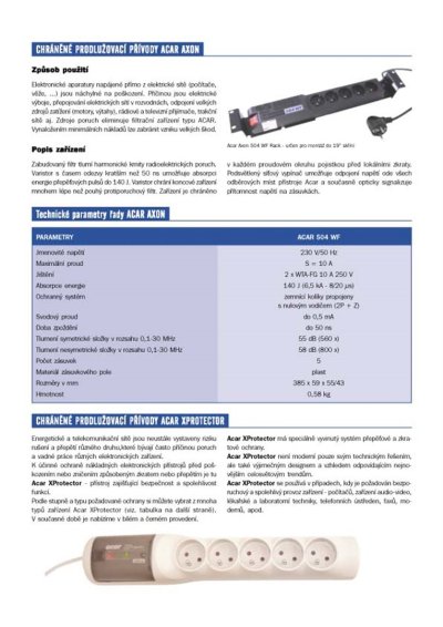 *19" *5m *černá, kovové "uši" pro upevnění do racku *19"Speciální verze modelu acar 504WF určená do 19" skříní.
