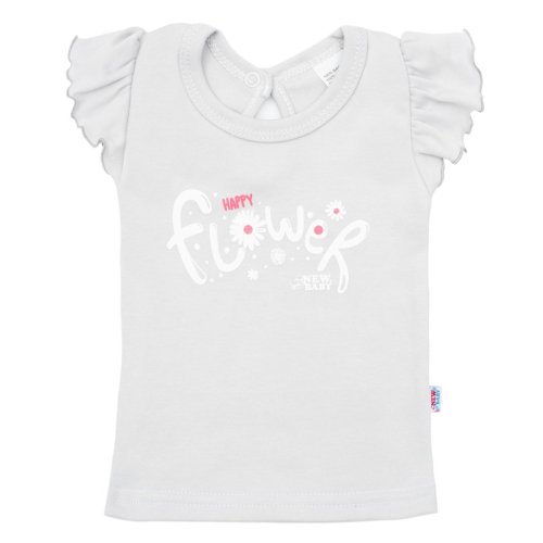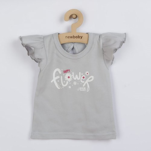 2-dílná soupravička české značky New Baby Happy Flower pro miminka. Obsahuje tričko a tepláčky. Tričko zdobí nápis Happy flower a šmrncovní volánkové rukávky. Zapínání na cvoček u krčku na zadní straně. Tepláčky mají širší lem, jsou zúžené na nohavičkách s lemem a jsou celopotištěné květinkami. Složení: 100% bavlna.