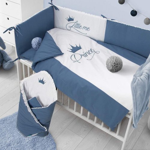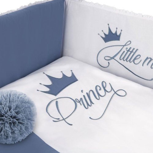 Krásná dětská bavlněná 2-dílná souprava do postýlky Belisima Royal Baby pro miminka. Souprava je zdobena nápisem a obrázkem koruny. Je vyrobena z měkkého, příjemného materiálu. Souprava obsahuje povlečení na polštářek cca 40x60 cm, povlečení na peřinku cca 90x120 cm. Materiál 100% bavlna.<BR>Tyto výrobky jsou bezpečné, protože:<BR>- přírodní bavlna nezpůsobuje odřeniny a podráždění, jelikož neobsahuje formaldehydy a další prvky, které kojencům škodí<BR>- neztrácí barvu a nezabarvuje oblečení<BR>- nabízené vzory jsou příjemné na pohled a mají uklidňující barvy<BR>- zipy používané u povlečení jsou tzv. "bezpečné zipy" bez volně visící koncovky, kterou by mohlo dítě utrhnout a spolknout<BR>- nejsou použity žádné knoflíky ani žádné další plastové nebo ocelové části, které mohou být pro Vaše dítě nebezpečné<BR>- materiál, který je používán pro výplně polštářů a přikrývek, je 100% protialergický, což znamená, že se v jeho vláknech nešíří žádné mikroorganismy ani plíseň.