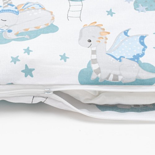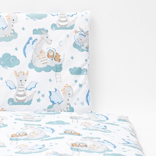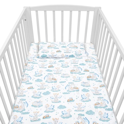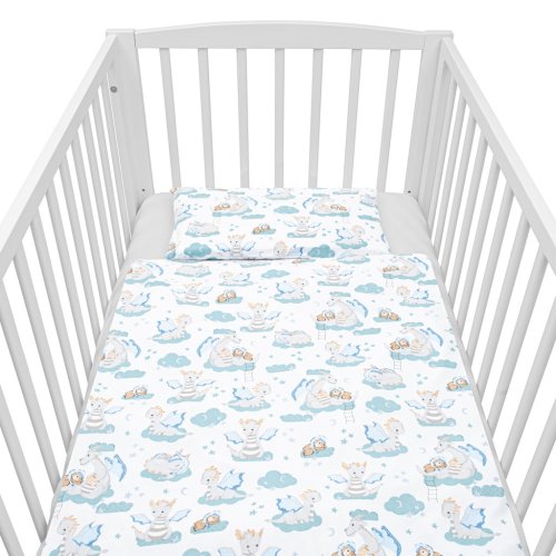 Dětská 2-dílná souprava do postýlky New Baby Dráček je produktem české značky New Baby. Souprava je vyrobena ze 100% bavlny. Kvalitní provedení a nádherný detský motiv. Obsahuje povlečení na polštářek cca 40x60 cm + povlečení na peřinku cca 120x90 cm. Materiál 100% bavlna.<BR>Tyto výrobky jsou bezpečné, protože:<BR>- přírodní bavlna nezpůsobuje odřeniny a podráždění, jelikož neobsahuje formaldehydy a další prvky, které kojencům škodí<BR>- neztrácí barvu a nezabarvuje oblečení<BR>- nabízené vzory jsou příjemné na pohled a mají uklidňující barvy<BR>- zipy používané u povlečení jsou tvz. "bezpečné zipy" bez volně visící koncovky, kterou by mohlo dítě utrhnout a spolknout<BR>- nejsou použity žádné knoflíky ani žádné další plastové nebo ocelové části, které mohou být pro Vaše dítě nebezpečné<BR>- materiál, který je používán pro výplně polštářů a přikrývek, je 100% protialergický, což znamená, že se v jeho vláknech nešíří žádné mikroorganismy ani plíseň OEKO-TEX STANDARD 100.