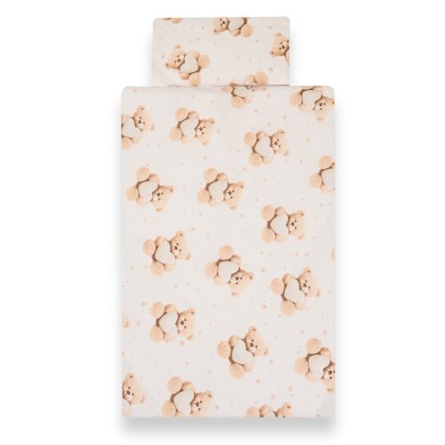 Dětská 2-dílná souprava do postýlky New Baby Love Teddy Bear je produktem české značky New Baby. Souprava je vyrobena ze 100% bavlny. Kvalitní provedení a nádherný detský motiv. Obsahuje povlečení na polštářek cca 40x60 cm + povlečení na peřinku cca 120x90 cm. Materiál 100% bavlna.<BR>Tyto výrobky jsou bezpečné, protože:<BR>- přírodní bavlna nezpůsobuje odřeniny a podráždění, jelikož neobsahuje formaldehydy a další prvky, které kojencům škodí<BR>- neztrácí barvu a nezabarvuje oblečení<BR>- nabízené vzory jsou příjemné na pohled a mají uklidňující barvy<BR>- zipy používané u povlečení jsou tvz. "bezpečné zipy" bez volně visící koncovky, kterou by mohlo dítě utrhnout a spolknout<BR>- nejsou použity žádné knoflíky ani žádné další plastové nebo ocelové části, které mohou být pro Vaše dítě nebezpečné<BR>- materiál, který je používán pro výplně polštářů a přikrývek, je 100% protialergický, což znamená, že se v jeho vláknech nešíří žádné mikroorganismy ani plíseň OEKO-TEX STANDARD 100.