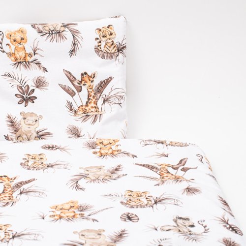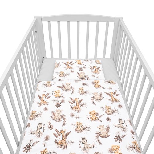 Dětská 2-dílná souprava do postýlky New Baby Safari je produktem české značky New Baby. Souprava je vyrobena ze 100% bavlny. Kvalitní provedení a nádherný detský motiv. Obsahuje povlečení na polštářek cca 40x60 cm + povlečení na peřinku cca 120x90 cm. Materiál 100% bavlna.<BR>Tyto výrobky jsou bezpečné, protože:<BR>- přírodní bavlna nezpůsobuje odřeniny a podráždění, jelikož neobsahuje formaldehydy a další prvky, které kojencům škodí<BR>- neztrácí barvu a nezabarvuje oblečení<BR>- nabízené vzory jsou příjemné na pohled a mají uklidňující barvy<BR>- zipy používané u povlečení jsou tvz. "bezpečné zipy" bez volně visící koncovky, kterou by mohlo dítě utrhnout a spolknout<BR>- nejsou použity žádné knoflíky ani žádné další plastové nebo ocelové části, které mohou být pro Vaše dítě nebezpečné<BR>- materiál, který je používán pro výplně polštářů a přikrývek, je 100% protialergický, což znamená, že se v jeho vláknech nešíří žádné mikroorganismy ani plíseň OEKO-TEX STANDARD 100.