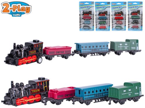 2-Play Traffic lokomotiva 7 cm kov s vagóny 3 ks 6-7 cm zpětný chod - mix variant či barev