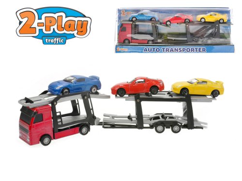Mají Vaše děti spoustu malých autíček? S tímto přepravníkem je převezou a přepraví na jakékoliv místo. Kovový přepravník aut v měřítku 1:60 má odjímatelný přívěs, výsuvnou plošinu pro snadnější najetí aut na přívěs. Součástí jsou i tři malá auta. Vhodné pro děti od 3 let.