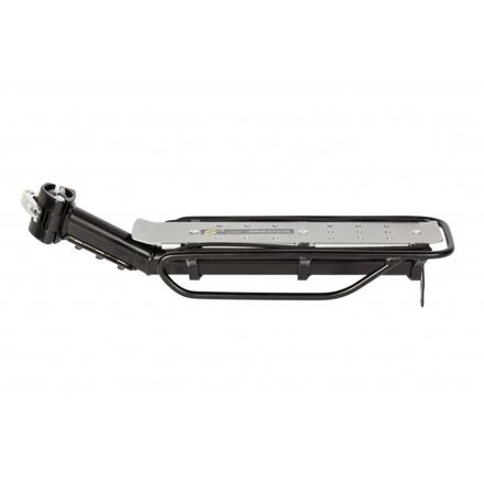 Zadní univerzální nosič 209 na sedlovku využijete pro převoz lehčích nákladů a to zejména v případech, kdy nelze připevnit standardní nosič k rámu kola. Vhodný je například pro celoodpružená kola, kola s atypickou zadní stavbou nebo modely bez návarků a závitů pro zadní nosič. Tělo nosiče je svařené z hliníkové slitiny AW 6061. Postranice jsou neodnímatelné. K sedlovce (s průměrem 25,4-32 mm) se nosič uchytí pomocí dělené objímky a rychloupínáku. Maximální nosnost nosiče je 8 kg. Nosič je vhodný pro brašny Sport Arsenal Art č.505 a 450, na nosič lze použít i brašny jiných značek, plnou kompatibilitu však nelze zcela zaručit. Výrobek prošel zkouškami na speciálním testovacím stroji podle norem DIN. Upozornění: nosič není vhodný na sedlovky z uhlíkových kompozitů! Parametry: -rozměr (d x š x v): 33,5 x 11,5 x 5,5 cm -hmotnost: 710 g -materiál: hliník -nosnost: 8 kg -na sedlovku s průměrem 25,4-32 mm