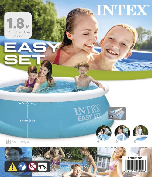 Samonosný bazén. Rozměry 183 cm (horní obvod 145 cm) x 51 cm. Výška hladiny 41 cm. Kapacita 900 L.