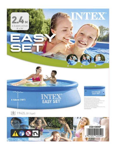 Klasika mezi nadzemními bazény. Bazén Intex Easy Set patří mezi velmi oblíbené bazény. Užijte si léto na vaší zahradě! Tento nadzemní bazén Intex Easy Set s nafukovacím horním límcem potěší každého člena rodiny. Ideální bazén pro rodiny s dětmi, neboť neobsahuje kovové součásti. Výhody: