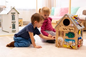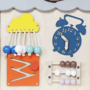 Od tkaniček až po hrající telefon! Tento nádherný interaktivní domeček je inspirovaný principy Montessori a přináší dětem nekonečné možnosti objevování a učení se hrou. Každá jeho strana nabízí nové dobrodružství, které rozvíjí jemnou motoriku, trpělivost, zvídavost a schopnost řešit problémy. Děti zde najdou různé druhy zámků, západek a háčků, které po odemknutí odhalí tajemná dvířka, spinner k roztočení, otočnou minutku, funkční vypínač se světýlkem, či barevný labyrint s rybičkou. Xylofon s paličkou seznámí děti s prvními tóny a rytmem, zatímco hodiny naučí porozumět času. Nechybí ani hrajicí telefon jenž Vás zabaví nejrůznějšími zvuky i veselými melodiemi! Domeček uvnitř svítí. Motivuje děti k samostatnému objevování, učí je trpělivosti a koncentraci a zároveň je připravuje na každodenní činnosti běžného života prostřednictvím praktického tréninku. Poskytuje bezpečné a podnětné prostředí, ve kterém si děti hravou formou rozvíjejí dovednosti nezbytné pro samostatnost. Kombinace přírodního dřeva s příjemnými barvami spolu s kvalitním provedením dělají z této hračky pěkný doplněk každého pokojíčku nebo herny. Domeček se dodává složený v krabici. Hlavní vlastnosti: funkční světýlko a hrající telefondomeček uvnitř svítídodání ve složeném stavuvčetně paličky ke xylofonupodporuje samostatnost, jemnou motoriku a koordinaci ruka-okopodněcuje kreativní myšlení a rozvoj představivostisenzorická stimulaceedukace prostřednictvím hryinspirováno Montessoripřipravuje děti na každodenní činnosti běžného životana napájení souží LR44 knoflíková baterie a 4xAAA baterie (nejsou součástí balení)vhodné pro děti od 3 let
