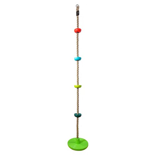 Dětské šplhací lano s barevnými disky a zakončeno kulatou houpačkou z plastu.Nezbytný pomocník pro objevitele venkovní zábavy na dětském hřišti nebo k domečku na stromě. Hlavní vlastnosti: nosnost 100 kgpevné lano o tloušťce 2,6 cm