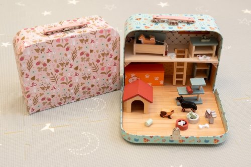 Mějte v ruce svůj vlastní psí svět. Domeček pro mazlíčky v kufříku to je malý svět velkých dobrodružství! Představte si kouzelný kufřík, který se po otevření promění v útulný domov pro pejsky. Pejsci různých plemen, stylové doplňky jako misky, kosti, rybky, hračky, bouda, pelíšky, žrádlo a další, to vše pěkně pohromadě v jednom balení. Děti si samy mohou vytvořit příběhy a scénky se svými psími přáteli. Ideální hračka na cesty i na doma. Hlavní vlastnosti: stylové doplňky miniaturní nábytek a dekorace pro pohodlný život čtyřnohých mazlíčkůpřenosný kufřík, který slouží zároveň jako domeček podporuje fantazii a péči o zvířátkasnadno přenositelný, ideální na výlety, návštěvy nebo dovolenou