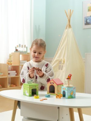 Užijte si spoustu zábavy se svými dřevěnými mazlíčky! Pes, kočka i králíček mají každý svůj domeček i jídlo a z bidýlka na ně dohlíží papoušek. Při hraní si dětí procvičují jemnou motoriku, sociální dovednosti a koordinaci ruka-oko. Tato hravá barevná sada podněcuje k nápadité hře. Dává dětem možnost se naučit, jak zvířátka žijí a jak se o ně správně postarat. Vyrobeno ze dřeva s certikací FSC. Hlavní vlastnosti:•kompaktní, skladné provedení•rozvíjí motoriku a představivost•tvoří vztah k zvířatům a přírodě Značka a certifikát FSC® (Forest Stewardship Council) zaručuje, že dřevo, ze kterého byl produkt vyroben, nebylo vytěženo nelegálně a pochází z lesů obhospodařovaných šetrným či přírodě blízkým způsobem, ve kterém jsou dodržovány přísné environmentální a sociální požadavky. Značka FSC® na výrobku znamená, že svým nákupem pomáháte chránit lesy a podporujete šetrné, odpovědné či přírodě blízké hospodaření, díky kterému jsou naše lesy stabilnější, zdravější, mají přirozenou druhovou skladbu a lépe odolávají negativním následkům klimatických změn.
