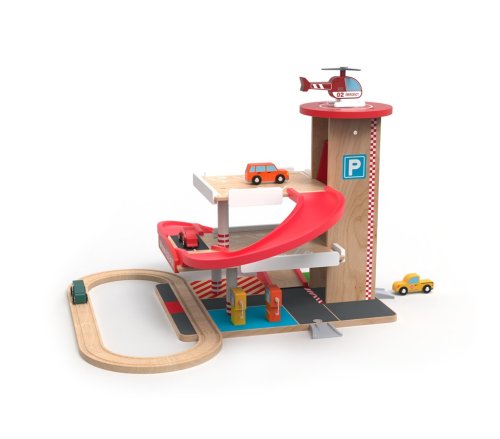 Všem automobilovým nadšencům se rozzáří oči, až uvidí barevnou garáž s výtahem a heliportem. Natankujte ekologicky u stojanu v přízemí. Vyvezte svůj vůz pomocí výtahu s klikovým pohonem a sledujte, jak sviští po rampě dolů a pokračuje dál po dráze. Stala se nehoda? Z heliportu na střeše už startuje helikoptéra. Tato edukativní hračka motivuje děti ke kreativní a představivé hře. Rozvíjí koordinaci ruka-oko, jemnou motoriku a zručnost. Garáž s parkovacími plochami na třech úrovních obsahuje také 4 autíčka a helikoptéru. Hlavní vlastnosti: garáž s heliportem a výtahem, 3 parkovací plochy, 4 autíčka, 2 palivové stojany, 1 elektro stojan, vrtulník, kolejeinspiruje ke kreativní a představivé hřerozvíjí koordinaci ruka-oko, jemnou motoriku a zručnost