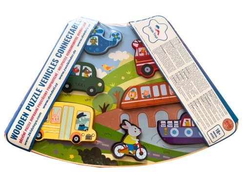 Rozměry balení: 31x20,3x1,8 cm Věk: 18m+ Materiál: dřevo Počet dílků: 8