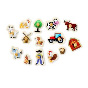 Krásné vkládací puzzle na pevné desce přináší kouzlo života na venkově přímo do dětských rukou! Děti se mohou seznámit se zvířátky na farmě prostřednictvím 14 vkládacích dílků, které lze snadno uchopit. Skládačka podporuje rozvoj jemné motoriky, koordinace ruka oko a zároveň učí poznávat zvířátka a prostředí na farmě. Díky pevnému dřevěnému provedení je puzzle odolné a vydrží i časté používání malými dětmi.