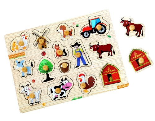 Krásné vkládací puzzle na pevné desce přináší kouzlo života na venkově přímo do dětských rukou! Děti se mohou seznámit se zvířátky na farmě prostřednictvím 14 vkládacích dílků, které lze snadno uchopit. Skládačka podporuje rozvoj jemné motoriky, koordinace ruka-oko a zároveň učí poznávat zvířátka a prostředí na farmě. Díky pevnému dřevěnému provedení je puzzle odolné a vydrží i časté používání malými dětmi. Hlavní vlastnosti: dřevěná základna se 14 vkládacími dílky s úchytyodolné a kvalitní dřevěné provedenírozvíjí jemnou motoriku a koordinaci ruka-okoedukativní a zábavná hra, která učí o životě na venkověvhodné pro děti od 18 měsíců