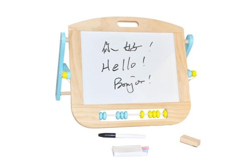 S touto stolní oboustrannou tabulí lze snadno rozvíjet kreativní umělecké dovednosti dětí. Z jedné strany magnetická tabule se suchým stíráním fixů, z druhé strany tradiční tabule pro křídu. Fix, křídy a plstěná houba je součástí balení. Tato tabule má také malé dvoubarevné počítadlo pro rané učení počítání. Tato dřevěná, dvoustranná, multifunkční nástěnka se jistě stane nepostradatelným společníkem Vašeho dítěte. Hlavní vlastnosti: oboustranná tabulevčetně příslušenstvísoučástí také počítadlo s deseti kulačkamivyrobeno ze dřeva s certifikací FSCvyhovuje současným evropským bezpečnostním normámpraktická pomůcka k učení Značka a certifikát FSC® (Forest Stewardship Council) zaručuje, že dřevo, ze kterého byl produkt vyroben, nebylo vytěženo nelegálně a pochází z lesů obhospodařovaných šetrným či přírodě blízkým způsobem, ve kterém jsou dodržovány přísné environmentální a sociální požadavky. Značka FSC® na výrobku znamená, že svým nákupem pomáháte chránit lesy a podporujete šetrné, odpovědné či přírodě blízké hospodaření, díky kterému jsou naše lesy stabilnější, zdravější, mají přirozenou druhovou skladbu a lépe odolávají negativním následkům klimatických změn.
