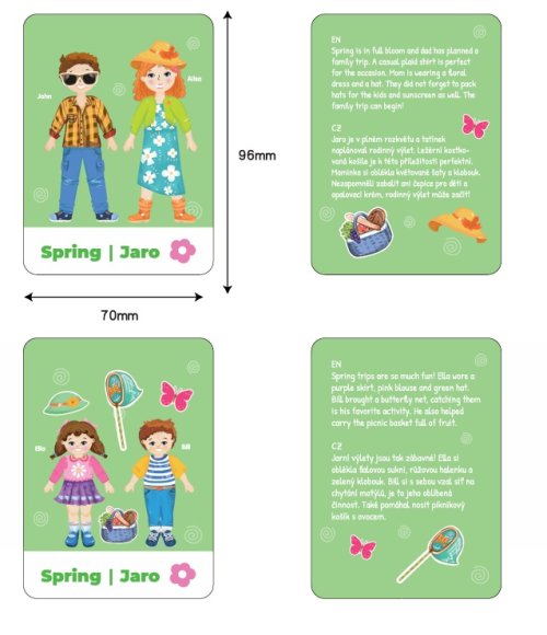 Oblékněte celou rodinu podle ročního období, nálady nebo zábavného úkolu! Magnetická sada „Happy Family“ přináší spoustu kreativní zábavy při navrhování oblečků pro maminku, tatínka, holčičku i chlapečka. Každý člen rodiny má své magnetické oblečky, doplňky a jedinečný styl – a záleží jen na dětské fantazii, jak je oblékne.Součástí sady jsou i tematické kartičky, které děti inspirují ke konkrétním úkolům – např. oblečení na léto či podzim, výlet na pláž, pečení dýňového koláče nebo podzimní sklizeň či zimní radovánky. Děti se tak hravě učí o ročních obdobích, rozvíjejí představivost a zároveň si procvičují jemnou motoriku. Hlavní vlastnosti: dřevěná magnetická krabička s otočnou tabulí4 postavy k oblékání (maminka, tatínek, dcera, syn)více než 80 magnetických dílků oblečení a doplňků8 oboustranných kartiček s příběhy v češtině a angličtině (jaro, léto atd.)rozvíjí jemnou motoriku, fantazii a poznávání ročních obdobípro děti od 3 letideální pro hru doma i na cestách