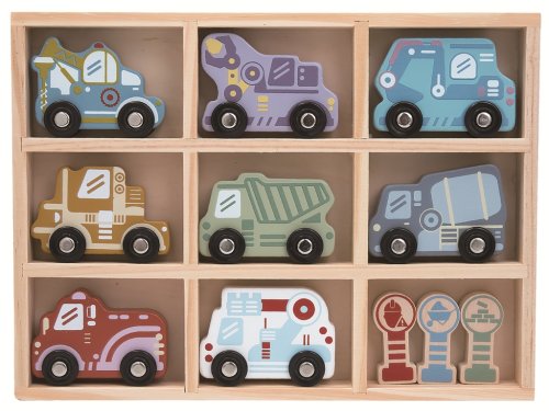 Sada 8 dřevěných autíček a 3 značek v praktické poličce je skvělým doplňkem dětského pokojíčku nebo herny. Obsahuje různá vozidla - cisternu, hasičské a policejní auto, bagr a další, která inspirují k představivé hře a podněcují dětskou fantazii. Autíčka jsou přizpůsobena pro malé dětské ruce, snadno se uchopují a dobře se s nimi manipuluje. Hraním si děti rozvíjejí jemnou motoriku, obratnost i koordinaci pohybů. Zároveň si při vytváření vlastních příběhů a situací posilují kreativní myšlení a komunikační schopnosti. Polička slouží nejen k praktickému uskladnění autíček, ale také jako stylový doplněk, který v dětském pokoji hezky vynikne a udrží hračky vždy pěkně po ruce. Hlavní vlastnosti: 8 autíček, 3 značky, poličkarozvíjí představivost a kreativitupodporuje představivou hrurozvíjí jemnou motoriku, koordinaci ruka-oko a obratnostzlepšuje sociální dovednostivhodné od 2 let