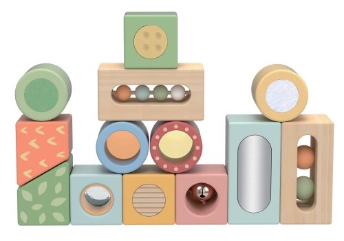 Právě jste se ocitli v ráji tvarů, barev a zvuků! Tyto kostky byly navrženy tak, aby podněcovaly dětské smysly a rozvíjely jejich kognitivní a motorické dovednosti. Poskytují dětem příležitost učit se o různých materiálech, texturách, barvách a zvucích, což přispívá k jejich rozvoji a vzdělání. Díky své rozmanitosti mohou kostky dopomoci stimulovat představivost k roztodivným stavbám nebo příběhům. Hlavní vlastnosti: zrakové, sluchové a hmatové atrakcepodporuje jemnou motoriku a představivost Značka a certifikát FSC® (Forest Stewardship Council) zaručuje, že dřevo, ze kterého byl produkt vyroben, nebylo vytěženo nelegálně a pochází z lesů obhospodařovaných šetrným či přírodě blízkým způsobem, ve kterém jsou dodržovány přísné environmentální a sociální požadavky. Značka FSC® na výrobku znamená, že svým nákupem pomáháte chránit lesy a podporujete šetrné, odpovědné či přírodě blízké hospodaření, díky kterému jsou naše lesy stabilnější, zdravější, mají přirozenou druhovou skladbu a lépe odolávají negativním následkům klimatických změn.