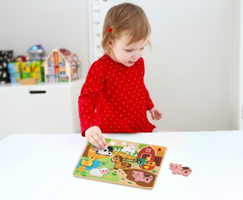 Jaký to krásný pohodový den na farmě. Toto vkládací puzzle přináší skvělou možnost, jak u našich nejmenších trénovat jemnou motoriku, trpělivost a poznávání zvířátek. Skládá se ze základny a 7 odnímatelných dílků. Hračka je vyrobena z kvalitního FSC dřeva. Má krásné ilustrace, díky kterým může také posloužit jako milá dekorace v dětském pokojíčku. Hlavní vlastnosti:•obsahuje 7 vkládacích dílů•rozvíjí smyslové dovednosti•procvičuje jemnou motoriku a trpělivost•pestrobarevná ilustrace Značka a certifikát FSC® (Forest Stewardship Council) zaručuje, že dřevo, ze kterého byl produkt vyroben, nebylo vytěženo nelegálně a pochází z lesů obhospodařovaných šetrným či přírodě blízkým způsobem, ve kterém jsou dodržovány přísné environmentální a sociální požadavky. Značka FSC® na výrobku znamená, že svým nákupem pomáháte chránit lesy a podporujete šetrné, odpovědné či přírodě blízké hospodaření, díky kterému jsou naše lesy stabilnější, zdravější, mají přirozenou druhovou skladbu a lépe odolávají negativním následkům klimatických změn.