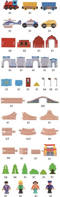 Tato detailně propracovaná dřevěná vláčkodráha potěší každé zvídavé dítě. Podporuje fantazii, rozvíjí jemnou motoriku a nabízí nekonečně mnoho herních scénářů. Stačí naložit náklad, vyrazit přes most a během jízdy potkat policejní stanici s heliportem, taxi službu nebo zvedací závoru. Každý den může být jiný – a každá jízda nový příběh! Hlavní vlastnosti: 80 dílů kompletní sada s kolejemi, vláčkem, vagony, auty, postavičkami a spoustou doplňků rozvíjí jemnou motoriku a kreativitupodporuje představivost, obratnost a koordinacikvalitní dřevěné zpracování s barevnými detailykompatibilní s dalšími dřevěnými vláčkodráhami