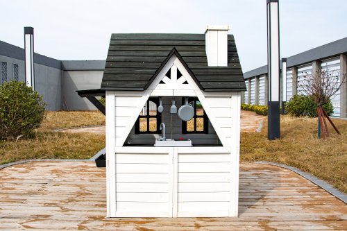 Kdo by netoužil po svém vlastním bydlení! Dopřejte svým dětem klidný kout, kde můžou odpočívat, mít soukromí a nerušeně si hrát. V tomto rozkošném domečku se budou cítit jako v pohádce. Velké boční okno nabízí krásný výhled do okolí a umožní proměnit domeček v prodejní stánek nebo obchod. V útulné kuchyňce, ve které nechybí varná deska s otočným červeným knoflíkem, dřez a základní nádobí, předvedou malí kuchaři a kuchařky své kulinářské dovednosti a připraví pro kamarády nebo rodiče chutné menu. Dalšími stylovými doplňky jsou hodiny, truhlíky po stranách vstupních dveří, ve kterých se budou krásně vyjímat květiny, praktický vstup pro pejska, který je překryt látkovým závěsem s motivem psí boudy. Domeček je vyroben ze dřeva a opatřen nátěrem v přírodních barvách. Bude skvělým doplňkem a ozdobou každé zahrady nebo menšího venkovního prostoru. Tak na co ještě čekáte? Zazvoňte na zvonek a pojďte dál! K napájení zvonku slouží 3 baterie LR44, které nejsou součástí balení. Dodáváno v rozloženém stavu s podrobným návodem na sestavení. Hlavní vlastnosti: funkční zvonek, kuchyňský kout s vybavením (varná deska, dřez, pánev, 2 ks náčiní), truhlíky, vstup pro pejskarozvíjí sociální dovednostiútulný designkvalitní a detailní provedenívyrobeno ze dřevavhodné pro hru více dětík napájení slouží 3 baterie LR44 (nejsou součástí balení)dodáváno v rozloženém stavunávod na sestavení je součástí balení Informace pro B2B partnery: dropshipping v rámci ČR!
