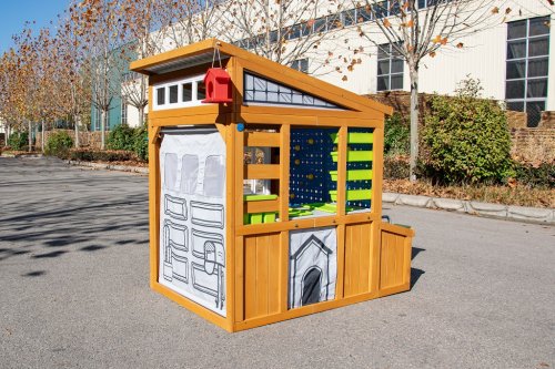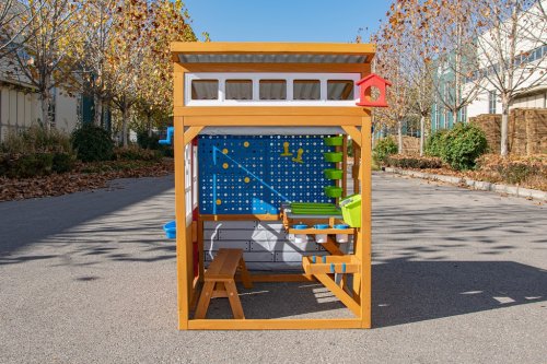 Dejte svému dítěti prostor objevovat, konstruovat a tvořit. Tento inovativní dřevěný hrací domek podporuje kreativitu, samostatnost i fantazii při každodenní hře. Svým vzhledem se šikmou střechou připomíná malou kůlnu na nářadí a nabízí řadu promyšlených herních i praktických prvků.Domeček je vybaven rolovacími „garážovými“ vraty s klikou, kolíkovou stěnou a vnitřním vyvýšeným stolem s pracovní deskou pro ruční práce. Nechybí ani odkládací přihrádky různých velikostí, které pomáhají udržet pořádek. Venkovní úložný prostor lze využít také jako lavici k sezení nebo pracovní plochu.Exteriér domečku doplňuje krmítko pro ptáčky a okenní truhlík podporující hru v kontaktu s okolním prostředím. Domeček nabízí také tradiční dvířka a malý vstup pro domácí mazlíčky, čímž rozšiřuje možnosti hry a zapojení celé rodiny. Obsah domečku: tradiční dvířka a malý vchod pro domácí mazlíčkygarážová vrata s klikou pro otevírání a zavíránístůl s úložným prostorem ve spodní částipohyblivá dřevěná lavicetruhlíky, kelímky, krmítko, úložné prostorypříslušenství ke kolíkové stěně Hlavní vlastnosti: podporuje rozvoj sociálních dovednostímoderní designkvalitní a detailní zpracovánívyrobeno ze dřeva vhodné pro hru více dětí Informace pro B2B partnery: dropshipping v rámci ČR!