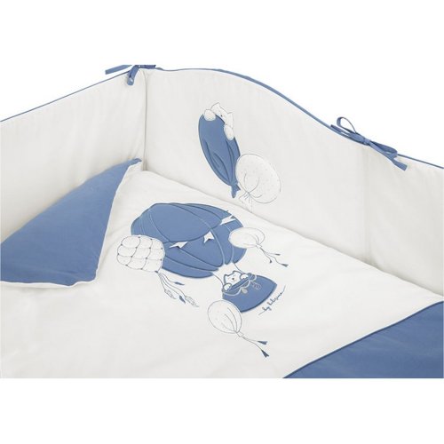 Krásná dětská bavlněná 3-dílná souprava do postýlky Belisima Ballons pro miminka. Souprava je zdobena balónky. Souprava je zdobena nápisem a obrázkem koruny. Je vyrobena z měkkého, příjemného materiálu. Obsahuje povlečení na polštářek cca 40x60 cm, povlečení na peřinku cca 100x135 cm a mantinel cca 180 cm. Materiál 100% bavlna.