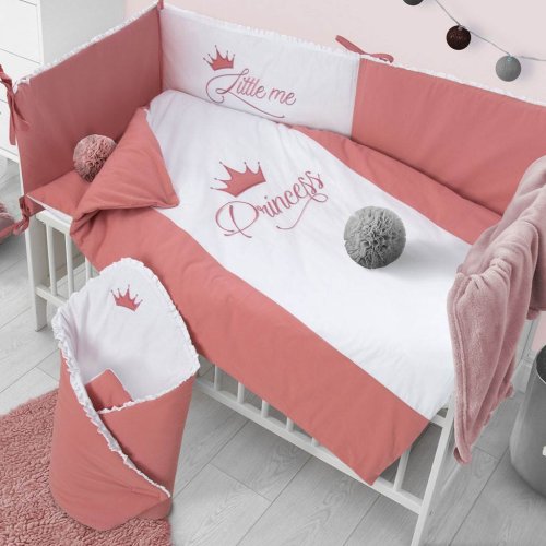 Krásná dětská bavlněná 3-dílná souprava do postýlky Belisima Royal Baby pro miminka. Souprava je zdobena nápisem a obrázkem koruny. Je vyrobena z měkkého, příjemného materiálu. Obsahuje povlečení na polštářek cca 40x60 cm, povlečení na peřinku cca 100x135 cm a mantinel cca 180 cm. Materiál 100% bavlna.
