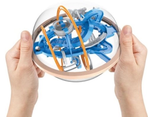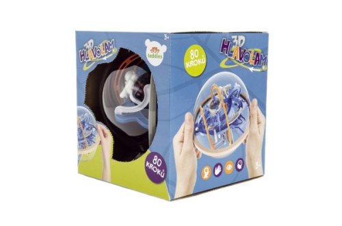 Hlavním úkolem je provést kuličku bludištěm. 3D bludiště, ve kterém musíš manévrovat malou kuličkou přes náročné překážky od začátku (pozice 1) až do konce (pozice 80). Plastovou kouli, do které je celý labyrint uzavřen, budeš muset mnohokrát otočit o 360°. Klíčem k vítězství je trpělivost, kdo spěchá, daleko se nedostane. Otáčej hlavolamem tak, aby byla kulička stále v rovnováze, jinak hrozí, že vypadne a ty budeš muset začít znovu. Přemýšlej a zkoumej dráhu, čeká tě spousta nástrah, které budou potřebovat přesný pohyb a rychlost. Vyřešit některé úseky nemusí být vždy lehké, ale vše se dá zvládnout. Rozměr hlavolamu: 18 cm Rozměr krabice: 19 x 20 x 19 cm Vhodné pro děti od 3 let.