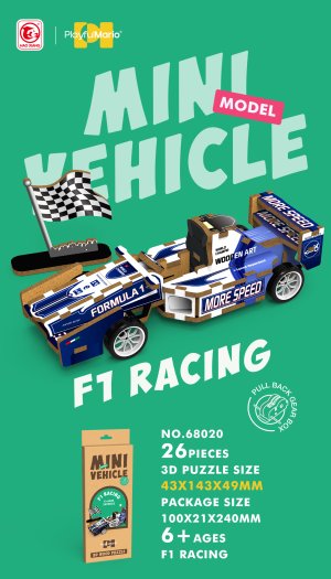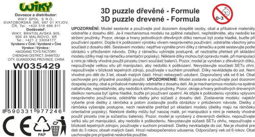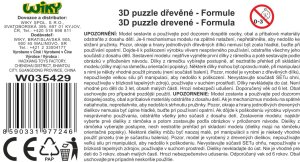 3D puzzle dřevěné - Formule. Rozměry 14x4,9x4,3 cm. 26 dílků. Na zpětné natažení.