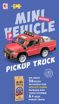 3D puzzle dřevěné - Pickup. Rozměry 13x6,2x6 cm. 26 dílků. Na zpětné natažení.