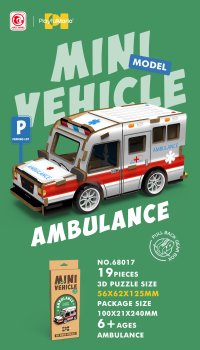 3D puzzle dřevěné - Sanitka. Rozměry 13x5,6x6,2 cm. 19 dílků. Na zpětné natažení.
