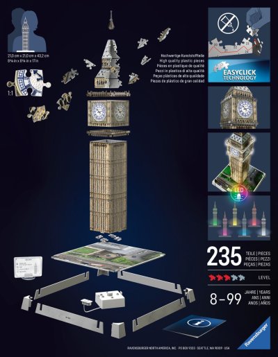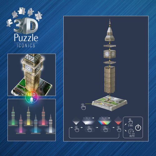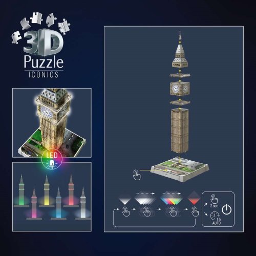 Postavte si osvětlený model Big Ben z Iconics edice ze stabilních plastových dílků a rozsviťte ho LED světlem.Více možností v nastavení světla.