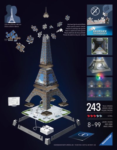 Postavte si osvětlený model Eiffelovy věže z Iconics edice pomocí stabilních plastových dílků a nechte ho rozzářit pomocí LED světla. Více možností v nastavení světla.