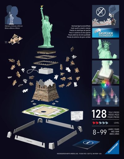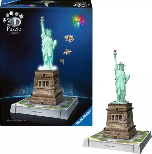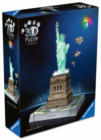 Postavte si osvětlený model Sochy svobody z Iconics edice ze stabilních plastových dílků a rozsviťte ho LED světlem. Více možností v nastavení světla.