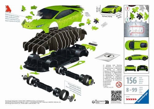 Zažijte jedinečnou kombinaci skládání a stavění a vytvořte si působivý model Lamborghini Huracan Evo v nepřehlédnutelné zelené barvě ze 108 dílků. Kvalitní, plastové puzzle s technologií Easyclick. Bez nutnosti lepení! S funkčními otáčecími koly. Puzzle obsahuje pevnou vnitřní konstrukci pro zajištění maximální stability složeného modelu.