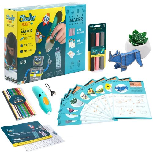 Obsah balení: 1x 3D pero 3Doodler Start+ 1x Micro USB kabel (adapter do zásuvky není součástí) 147x 3Doodler Start Eco-Plastic náplní 12 šablon 3D modelů krok za krokem: Sova, pejsek, lapač snů, robot, skateboard, Eiffelova věž, motýl, raketoplán, stoh knih, brýle, šikmá věž 9 karet pro aktivity s různými výzvami Plastová podložka na tvoření