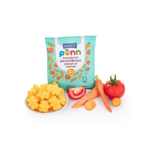 Díky oblíbeným příchutím křupky Salvest dětem nejen chutnají, ale nabízejí i něco navíc. Jejich speciální tvar skvěle padne do rukou malých strávníků. Hravě a s chutí se tak rozvíjí používání prstů na rukou a zlepšuje se zručnost a samostatnost při jídle. Pochutnat si na nich mohou už od ukončeného 7. měsíce, kdy také ocení vitamín B1, který přispívá k normální činnosti jejich nervové soustavy. A také to, že jsou ze 100 % *surovin. Červenou barvu jim pak dodávají výhradně sušená rajčátka a královna zeleniny – mrkvička.
