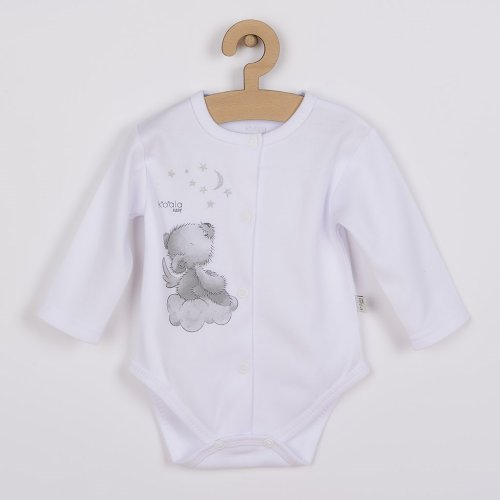 Nádherná bavlněná kojenecká 4-dílná soupravička Koala Angel pro miminka. Soupravička je vyrobena z velmi příjemného, měkkého a kvalitního materiálu, který je vhodný pro miminka a je vhodná nejen do porodnice. Obsahuje body s dlouhým rukávkem, dupačky, kabátek a čepičku. Celorozepínací body zdobí obrázek medvídka. Dupačky zdobí obrázek medvídka a zapínání je na cvočky na ramínkách a mezi nožičkama. Kabátek je jednobarevný se zapínáním po celé délce. Čepička je zdobena puntíky a po obvodu má široký pružný lem, který netlačí na hlavičku miminka a krásně kryje oušká miminka. V této soupravičce, která je precizně a kvalitně ušitá se bude miminko cítit velmi příjemně. Složení: 100% bavlna.