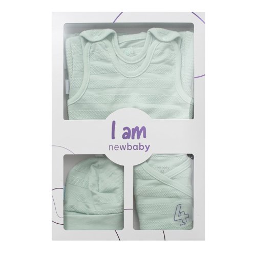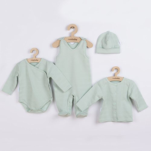 Roztomilá kojenecká 4-dílná soupravička české značky New Baby I AM pro miminka. Soupravička je vyrobena z velmi příjemného, měkkého a kvalitního materiálu, který je vhodný pro miminka a je vhodná nejen do porodnice. Obsahuje celorozepínací body s dlouhým rukávkem, dupačky, kabátek a čepičku. Body má boční zapínání po celé délce a mezi nožičkama na cvočky. Dupačky mají zapínání na cvočky na ramínkách a mezi nožičkama, coš usnadní oblékání a přebalování. Kabátek má zapínání na cvočky po celé délce. Čepička s širším lemem dobře drží na hlavičce miminka a nepadá. Je velmi praktická a netlačí na hlavičku miminka. Celá soupravička má nový neobyčejný design s atraktivním vzorem látky. Je navržena s ohledem na potřeby miminka a je vhodná i jako milý dáreček. Soupravička je v praktické Eko krabičce. Složení: 100% bavlna.