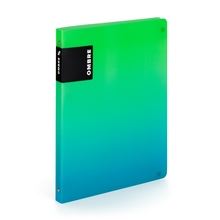 Čtyřkroužkový pořadač řady Ombre vyrobený z extra silného polypropylenu 4kroužková mechanika Hřbet šířky 2 cm Určeno pro dokumenty do formátu A4 Barva: modro-zelená