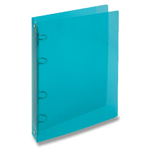 Transparentní polypropylenový 4kroužkový pořadač, kroužek ø 15 mm. Hřbet 20 mm. Na dokumenty A4, až na 100 listů.