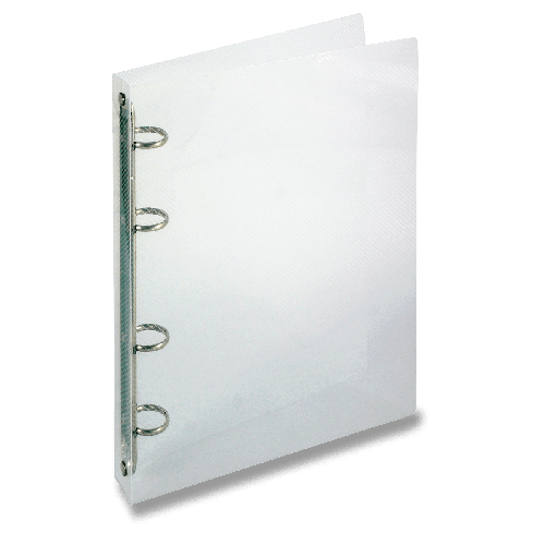 Transparentní polypropylenový 4kroužkový pořadač, kroužek ø 15 mm. Hřbet 20 mm. Na dokumenty A4, až na 100 listů.