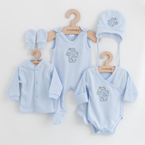 Roztomilá kojenecká 5-dílná soupravička české značky New Baby Classic pro miminka. Soupravička je vyrobena z velmi příjemného, měkkého a kvalitního materiálu, který je vhodný pro miminka a je vhodná nejen do porodnice. Obsahuje celorozepínací body s dlouhým rukávkem, dupačky, kabátek, čepičku a rukavičky. Body má boční zapínání po celé délce a mezi nožičkama na cvočky. Dupačky mají zapínání na cvočky na ramínkách a mezi nožičkama, což usnadní oblékání a přebalování. Kabátek má zapínání na cvočky po celé délce. Čepička je na zavazování a pěkně drží na hlavičce miminka. Rukavičky mají širší stahovací manžetku. Soupravička je zajímavá krásnou výšivkou. Je navržena s ohledem na potřeby miminka a je vhodná i jako milý dáreček. Soupravička je v praktické Eko krabičce. Složení: 100% bavlna.