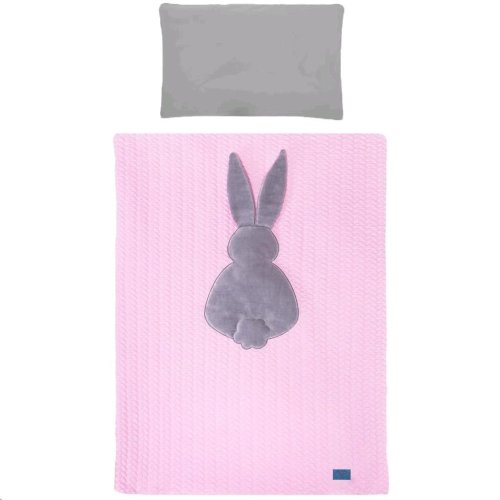 Dětská 5-dílná souprava do postýlky Belisima Králíček pro miminka. Souprava je z jedné strany z úpletového materiálu zdobena 3D vzorem a roztomilým plyšovým králíčkem. Druhá strana je bavlněná. Je vyrobena z měkkého, příjemného materiálu. Složení: vrchní úpletová strana: 50% bavlna, 50% polyester. Spodní strana: 100% bavlna. Souprava obsahuje povlečení na polštářek cca 40x60 cm, povlečení na peřinku cca 100x135 cm, mantinel cca 180 cm, výplň polštářek a peřinka. Materiál 100% bavlna.<BR>Tyto výrobky jsou bezpečné, protože:<BR>- přírodní bavlna nezpůsobuje odřeniny a podráždění, jelikož neobsahuje formaldehydy a další prvky, které kojencům škodí<BR>- neztrácí barvu a nezabarvuje oblečení<BR>- nabízené vzory jsou příjemné na pohled a mají uklidňující barvy<BR>- zipy používané u povlečení jsou tzv. "bezpečné zipy" bez volně visící koncovky, kterou by mohlo dítě utrhnout a spolknout<BR>- nejsou použity žádné knoflíky ani žádné další plastové nebo ocelové části, které mohou být pro Vaše dítě nebezpečné<BR>- materiál, který je používán pro výplně polštářů a přikrývek, je 100% protialergický, což znamená, že se v jeho vláknech nešíří žádné mikroorganismy ani plíseň.